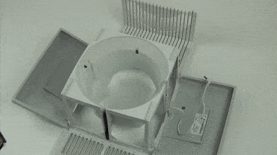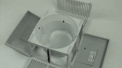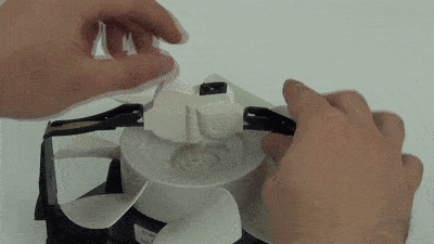 Соедините два ребристых крыла, подняв их вверх, и зафиксируйте, опустив вниз внешние края блокировочных кнопок. Затем поднимите вверх и захлопните обе боковые поверхности.