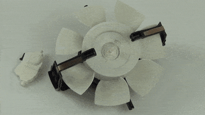 ШАГ 2. Установите новое гибкое сцепление на центральный вал вентилятора. При установке гибкого сцепления резиновые ножки должны совпадать с выемками на вентиляторе.