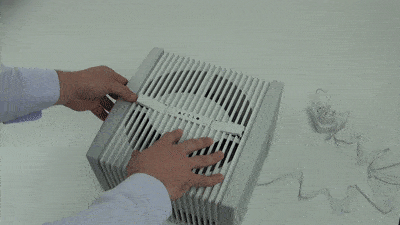 ШАГ 3. Нажмите пальцем на металлический контакт, одновременно обхватив верхнюю часть корпуса и не отпуская контакт, нажмите кнопку питания ВКЛ. Это действие должно активировать двигатель -вентилятор должен начать вращаться.